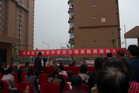 2019年4月13日,是運(yùn)城經(jīng)濟(jì)開發(fā)區(qū)建設(shè)發(fā)展公司員工最開心的日子。一大早,員工們就衣著整齊地站在“豐源居”小區(qū)廣場上,準(zhǔn)備迎接第一批搖號入住的租客。